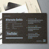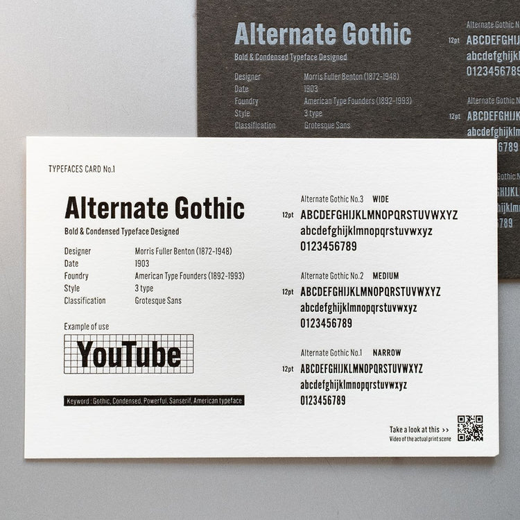 This is a representative sans-serif vertical gothic typeface that was created over 100 years ago. Although it has a long history, it is a very familiar font as it is used in the [YouTube] logo. The slim typeface allows for a large number of characters to be arranged in a limited space.
