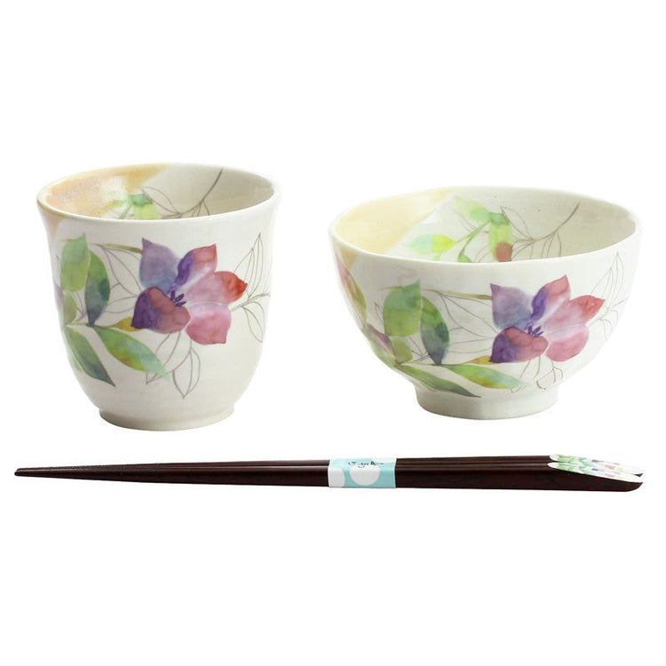 Flower Tsumi rice bowl/teacup, Kikyo (with Tenpou chopsticks)(04275)