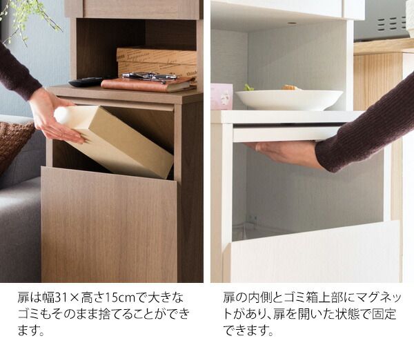 With a 45L capacity, it is perfect for kitchens, living rooms, bedrooms, and other places where storage is needed and garbage is generated. The push door type prevents odors from leaking and allows easy disposal by simply pushing the door. There is also a front door for easy attachment and removal of garbage bags, making it very convenient.