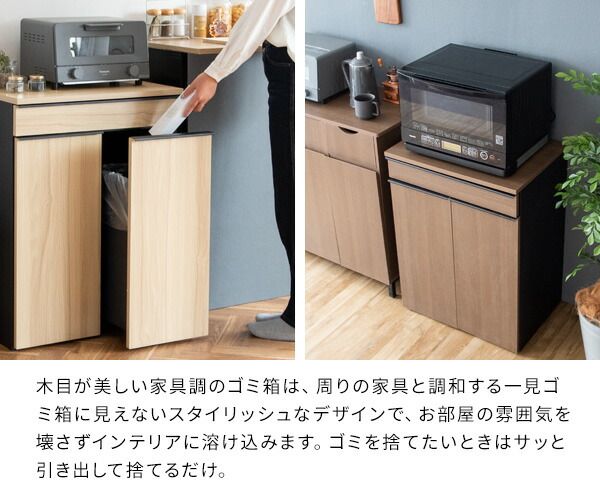 This dustbin features a stylish design without a lived-in feel and is easy to use, making it perfect for those who are particular about their interior design. The dustbin is equipped with casters that prevent odors from leaking and can be quickly moved to the hand, making it easy to dispose of trash.