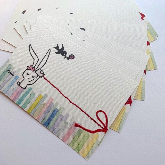 This is a picture of [Confession with a red string - Will you get it? By attaching it to a postcard