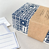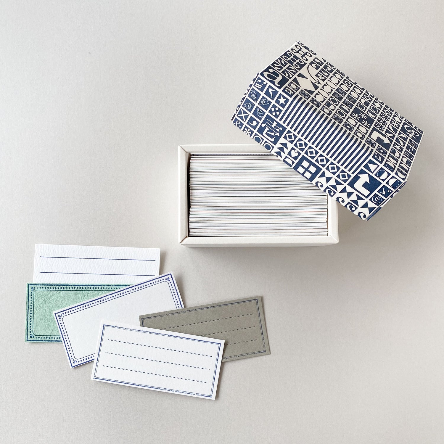 It would be a waste to throw away leftover letterpress paper! That's why we made a message card. The box has a monogram pattern that resembles a typeface, allowing you to fully enjoy the unevenness of the letterpress. Inside are about 150 cards with antique-style designs. The paper has a slightly different texture and writing feel, so please enjoy it as well as the letterpress texture.