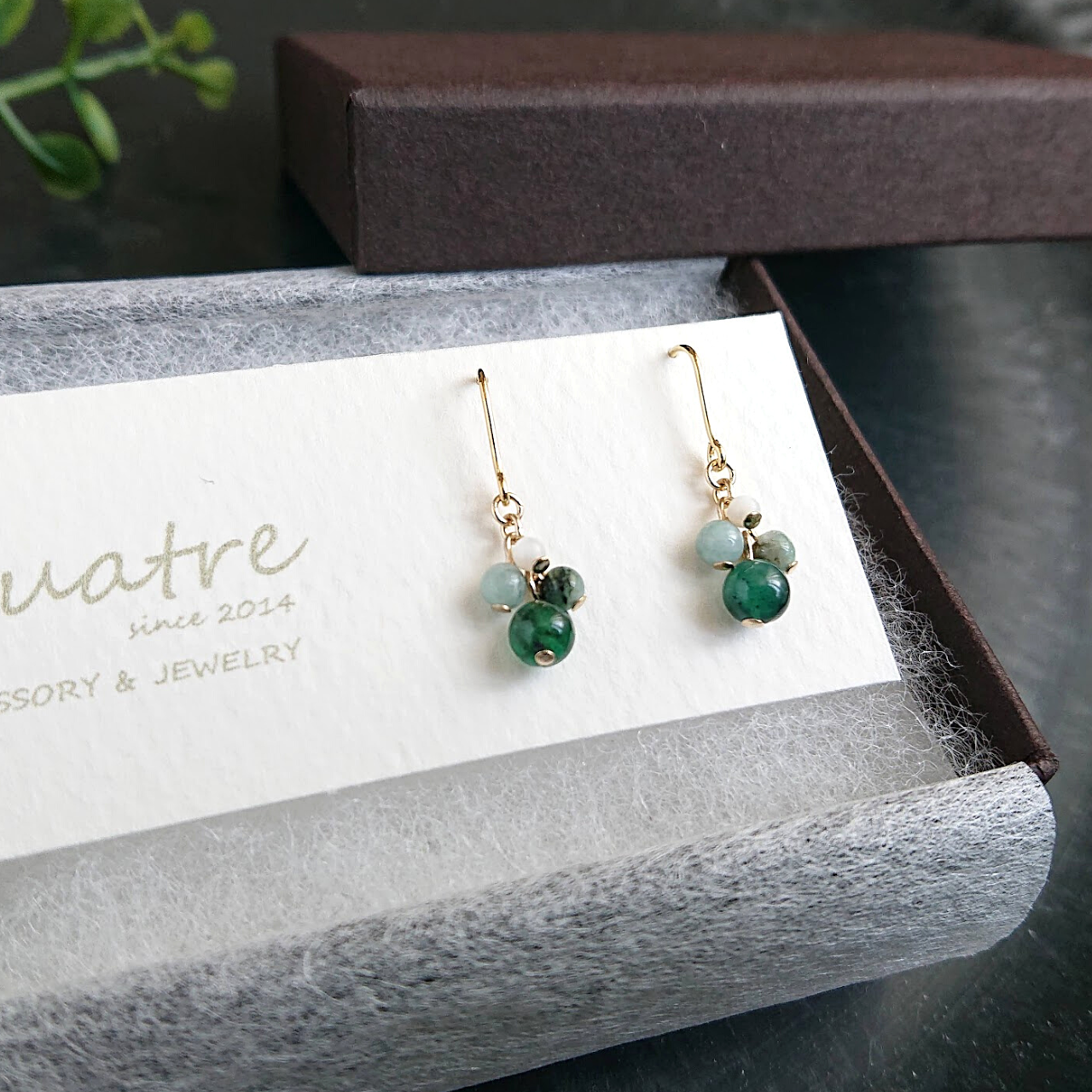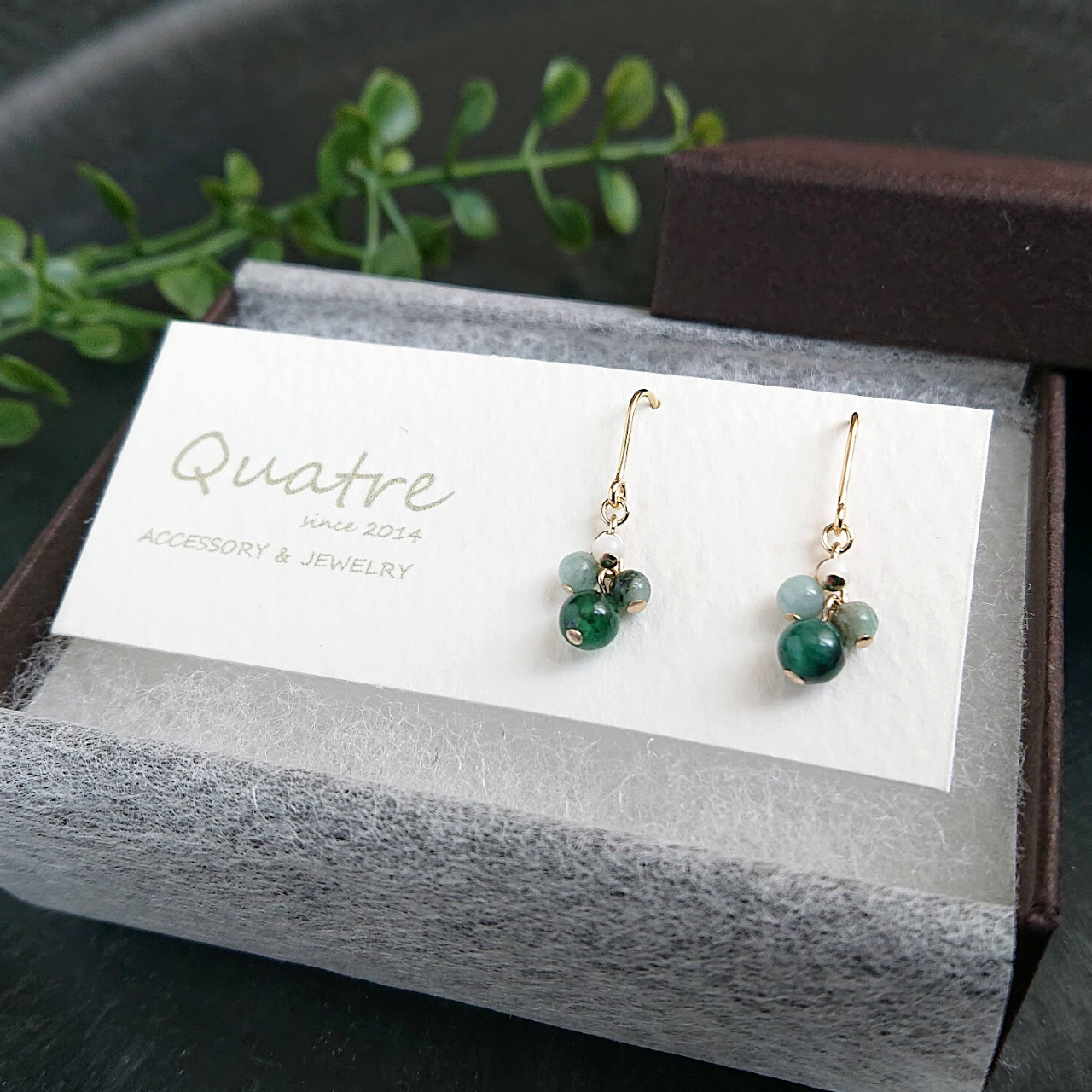 Emerald Pierced earrings quatre