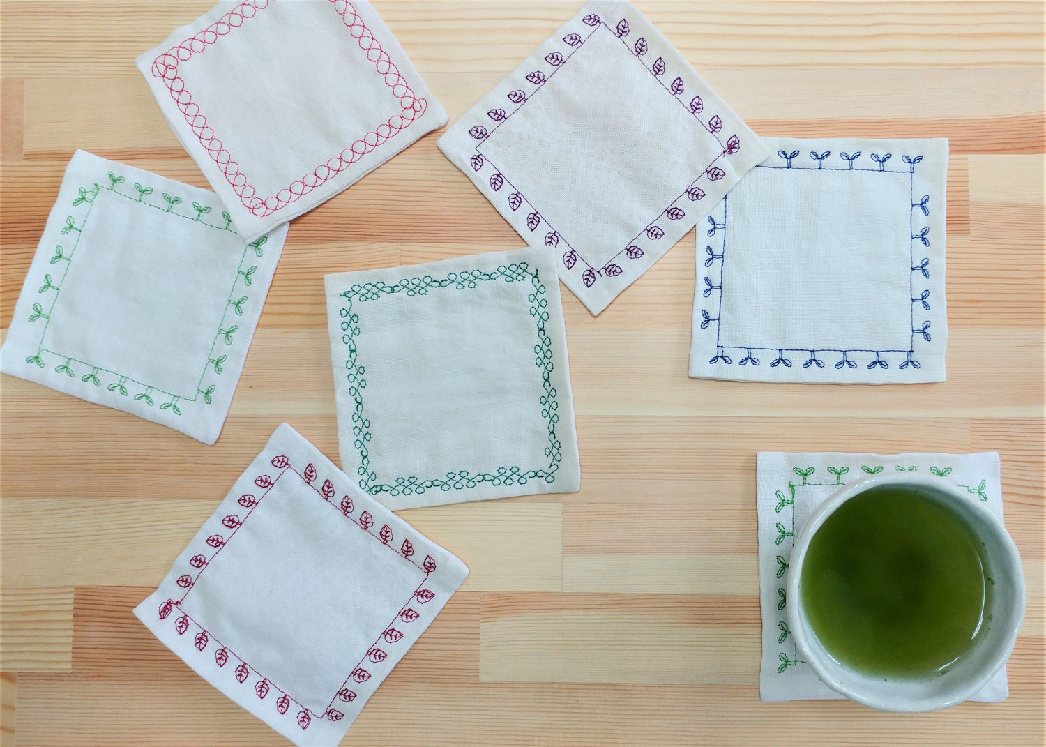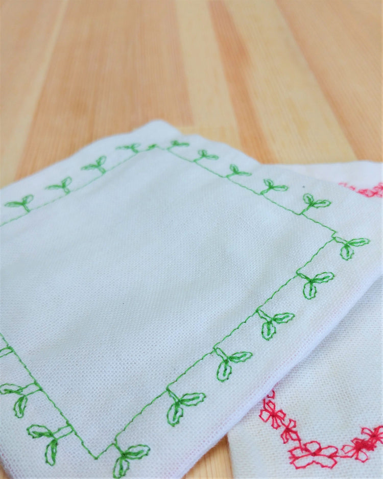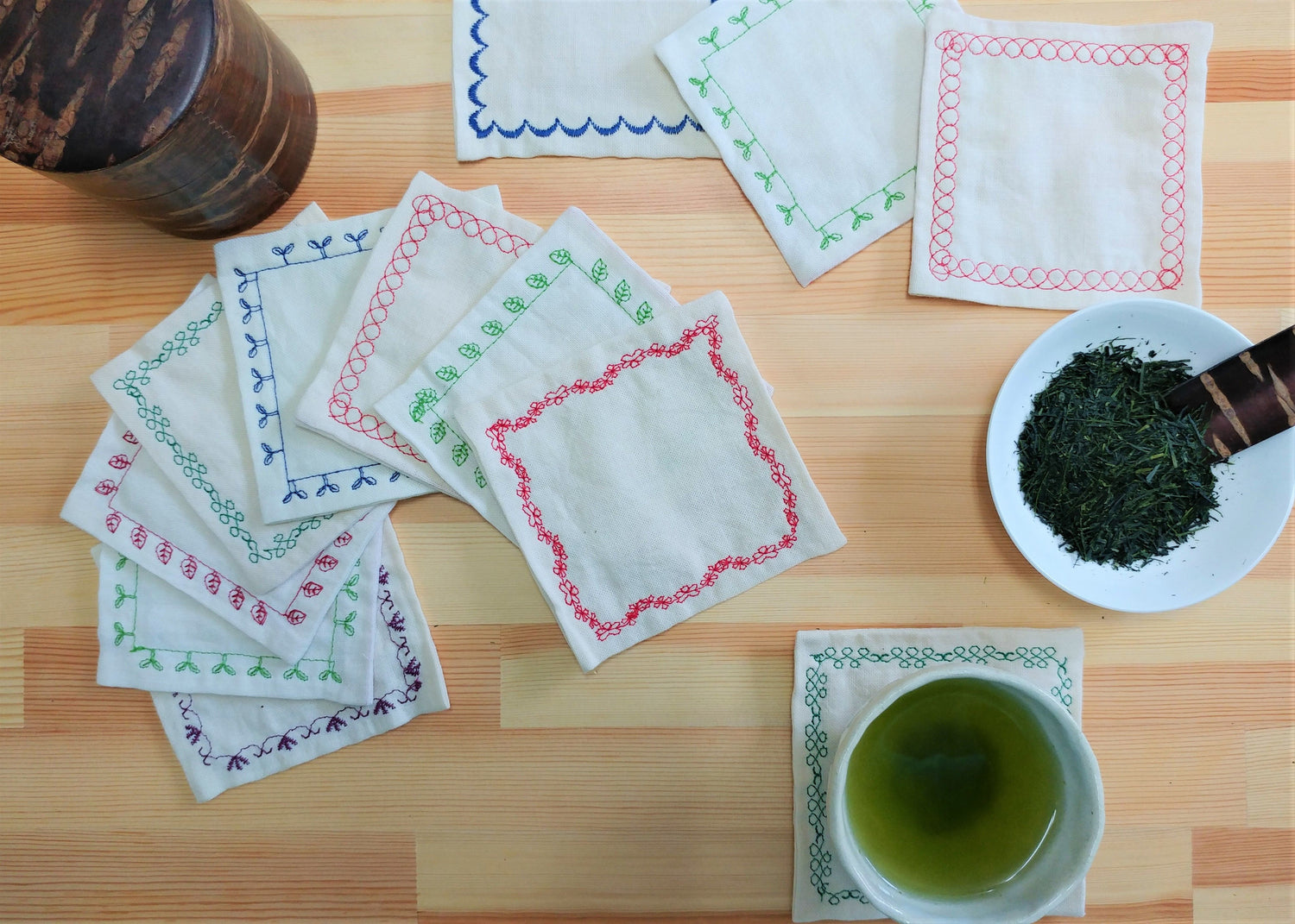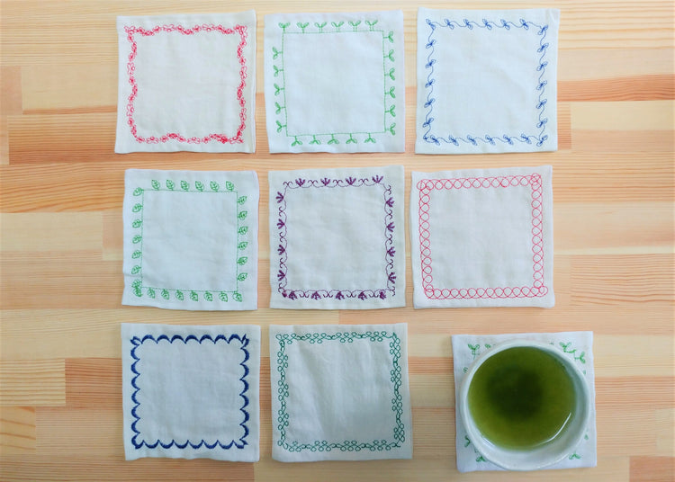A simple design is embroidered on the tea-dyed cloth, which is slightly ivory in color.