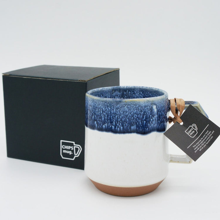 This is an original product brought to you by Chips Inc. The large capacity of 380 ml fits snugly in your hand and allows you to lift it without feeling its weight. We paid particular attention to the clay and glaze, and incorporated playful items that you won't find anywhere else. The packaging is also carefully selected, and each one comes in a box with the Chips Mag logo, making it a great gift. We hope you will try one of the mugs that Chips proudly brings to you. No.C006 CHIPS MUG PREMIUM â–The mouth of the glossy white mug is decorated with navy drops. The unglazed part is a brick. It was made in the image of blue waves lapping on a white sandy beach. The natural dripping of the glaze creates a unique taste.