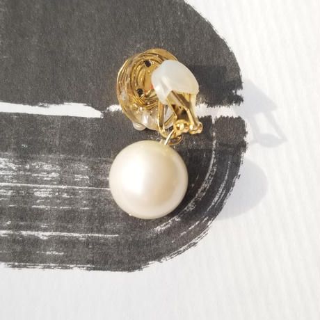 Metal cabochon big pearl Clip-on earrings, Pierced earrings