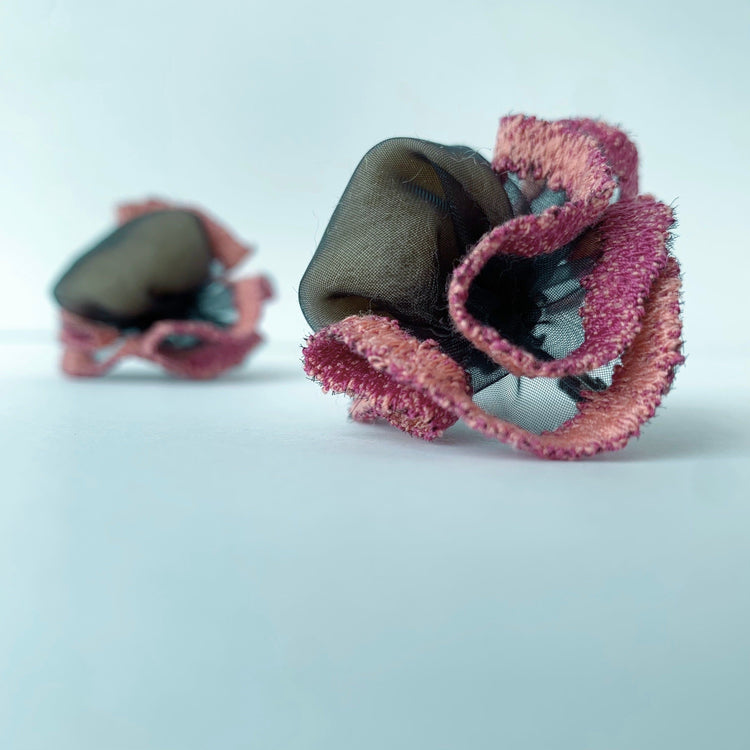 This large, lightweight accessory is made of free-motion embroidered organdie with wool trapped in it.