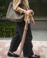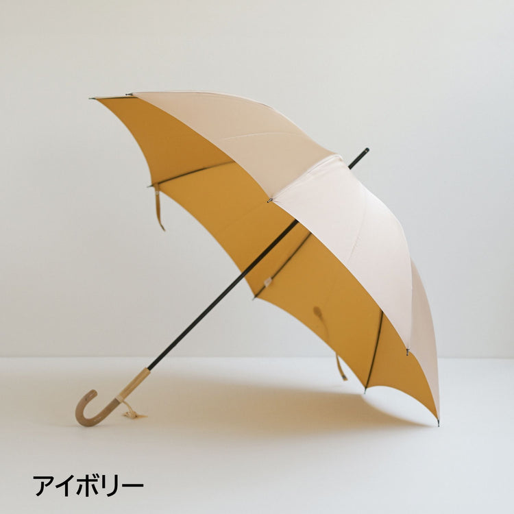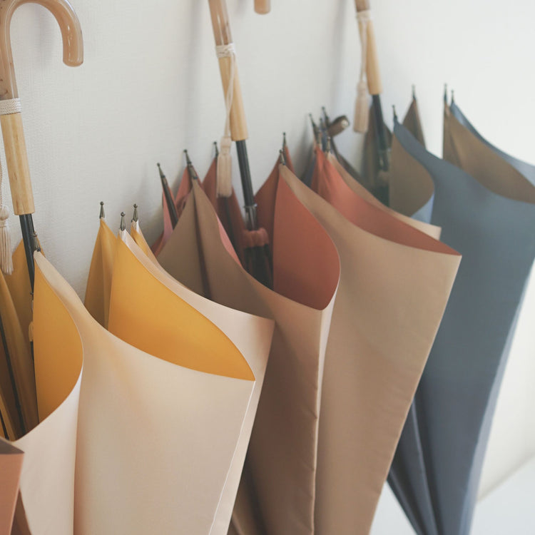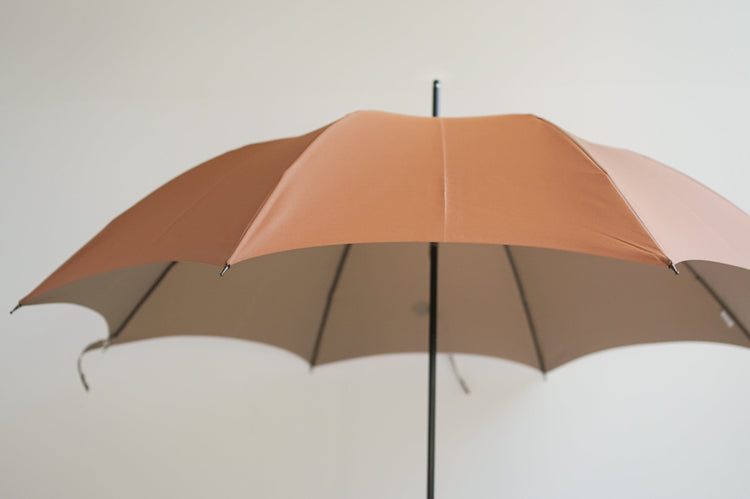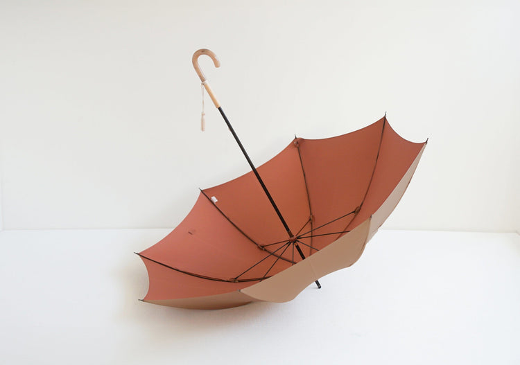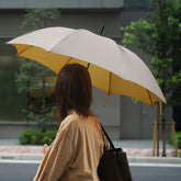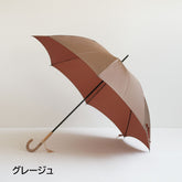 This is a rain or shine long umbrella made of Koshuori fabric, which is yarn-dyed and woven so that the front and back sides have different colors. The new standard "Tuprai" incorporates nuanced colors and combines a color variation that is easy to match with any season's fashion with the luxurious feel of Koshu-ori fabric. The color of the name band accentuates this smart long umbrella. The handle (handle made of acrylic and natural wood) also adds to the umbrella's charm.