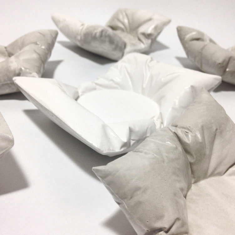 We hope you will enjoy the discrepancy between the rigidity of the unique mortar material and the soft-looking form.