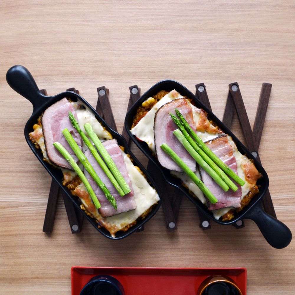 This convenient pot stand can be used to place a large gratin dish or multiple pots and pans at the same time.