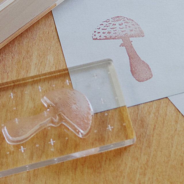 Clear stamped [TO-MEI HAN] mushrooms made of photopolymer.
