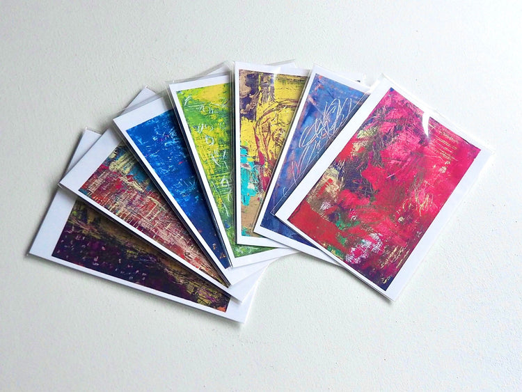 Postcards of colorful campus paintings ""HUE Seies "" in acrylic gouache.