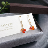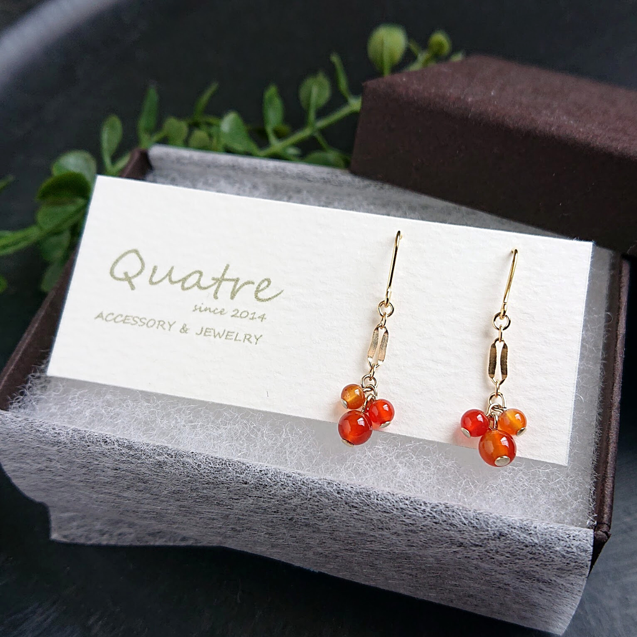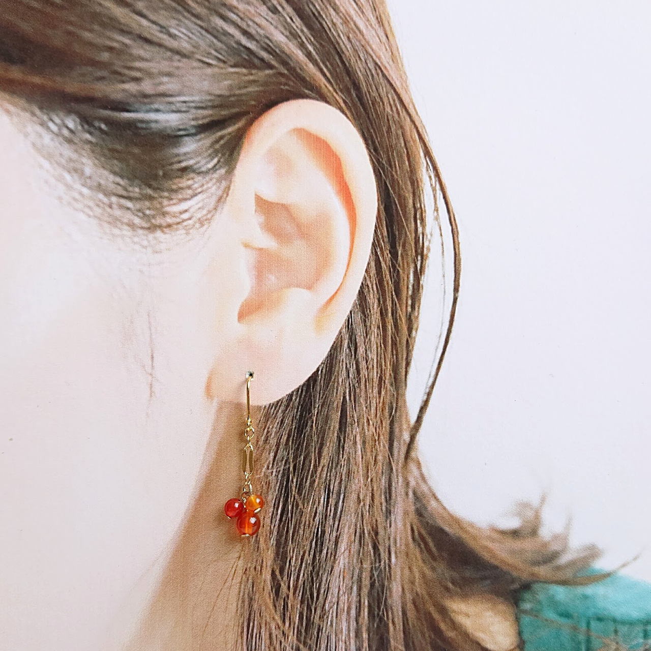 Three pieces of carnelian are placed on elegant gold-filled parts.