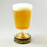 The glass is a double-wall glass that retains heat and cold. It keeps cold drinks cold and prevents condensation, while hot drinks stay hot and can be held without being hot.