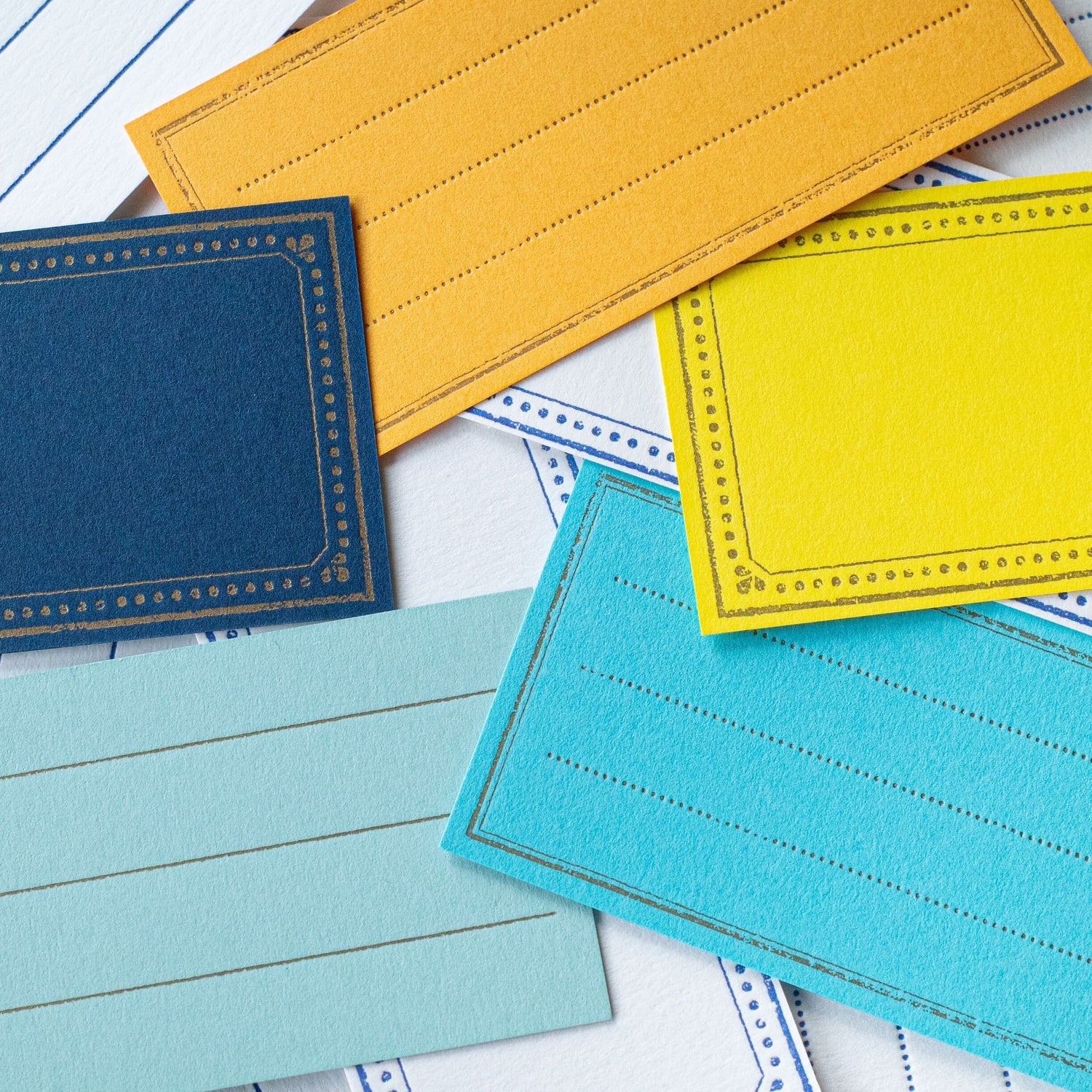 CARD: 1-color letterpress (navy / gold)