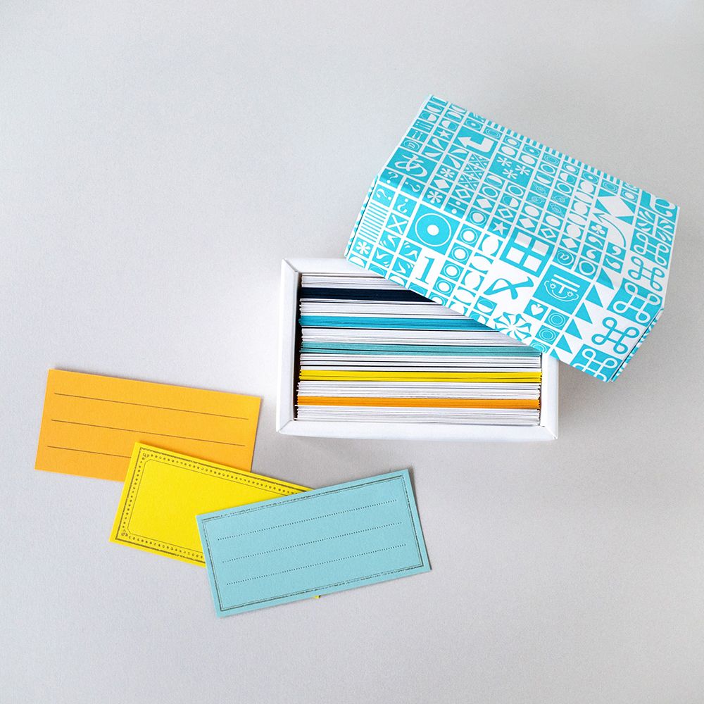 It is a waste to throw away the leftover paper from letterpress printing! We made a message card out of this feeling. The box has a monogram pattern that resembles a typeface, allowing you to fully enjoy the unevenness of letterpress printing. When you open the box, you will find a generous 150 cards with antique-style designs. Please enjoy the wide variety of papers with different textures and writing styles.