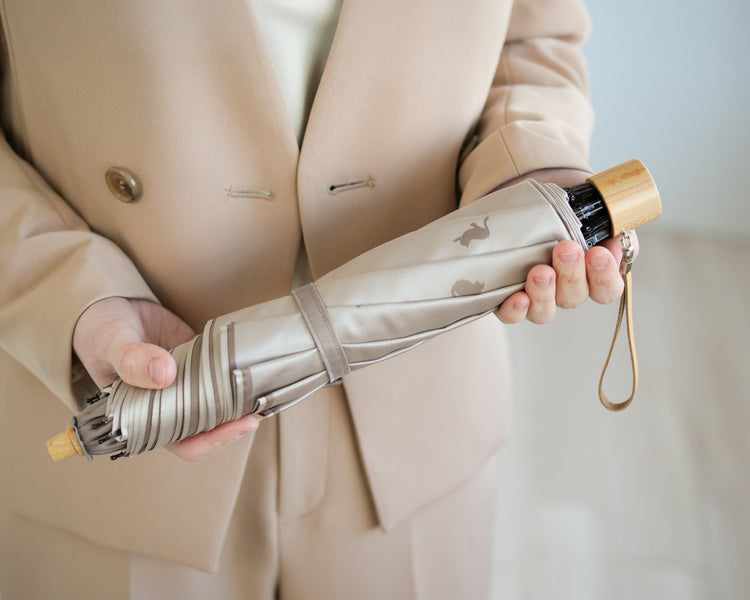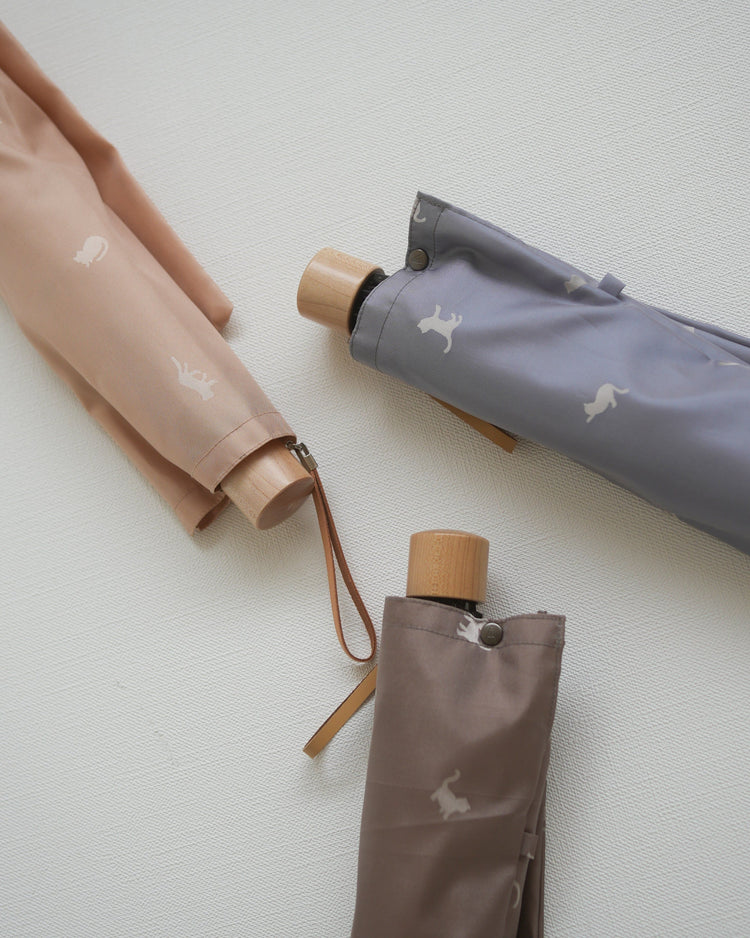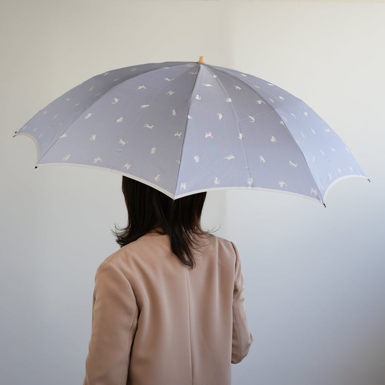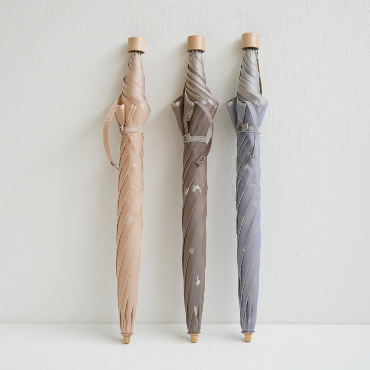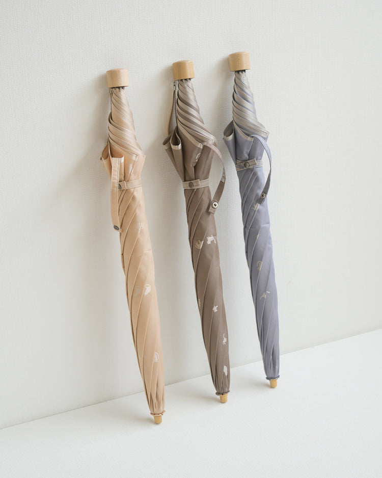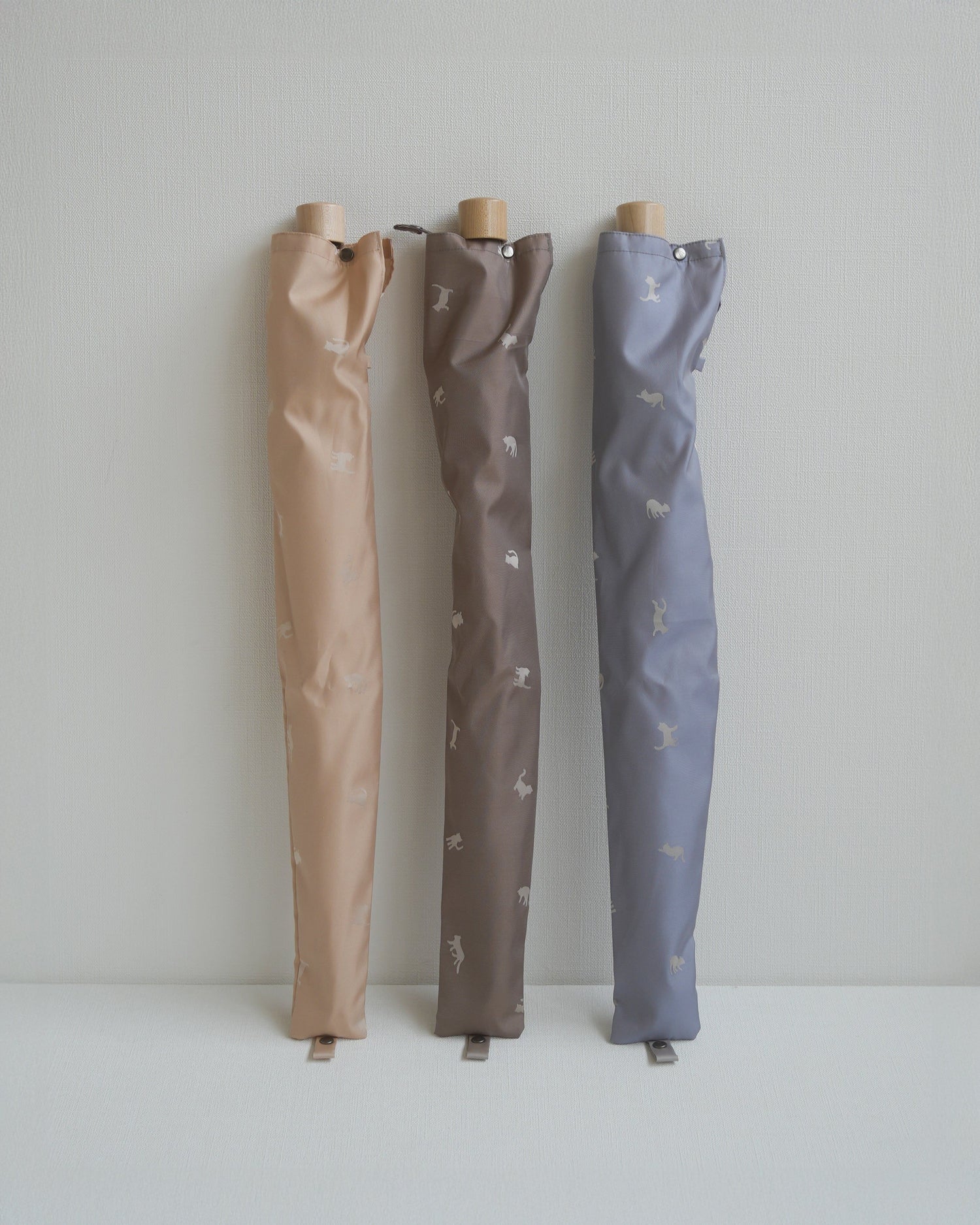 The folding umbrella with the silhouettes of cats in Yamanashi jacquard weave has been renewed for rain or shine.