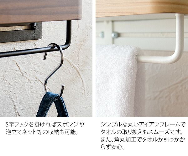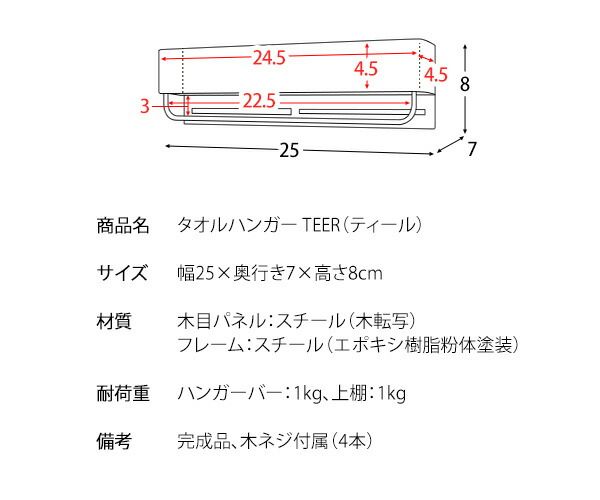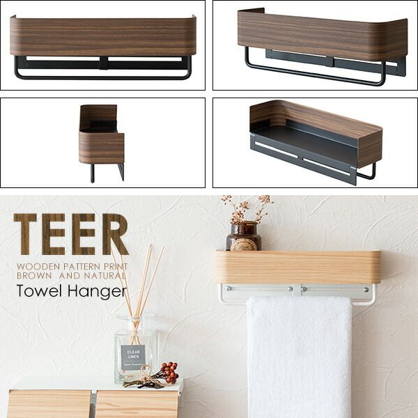 This towel hanger from the [TEER] series features a stylish design with beautiful wood grain transfer steel.