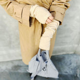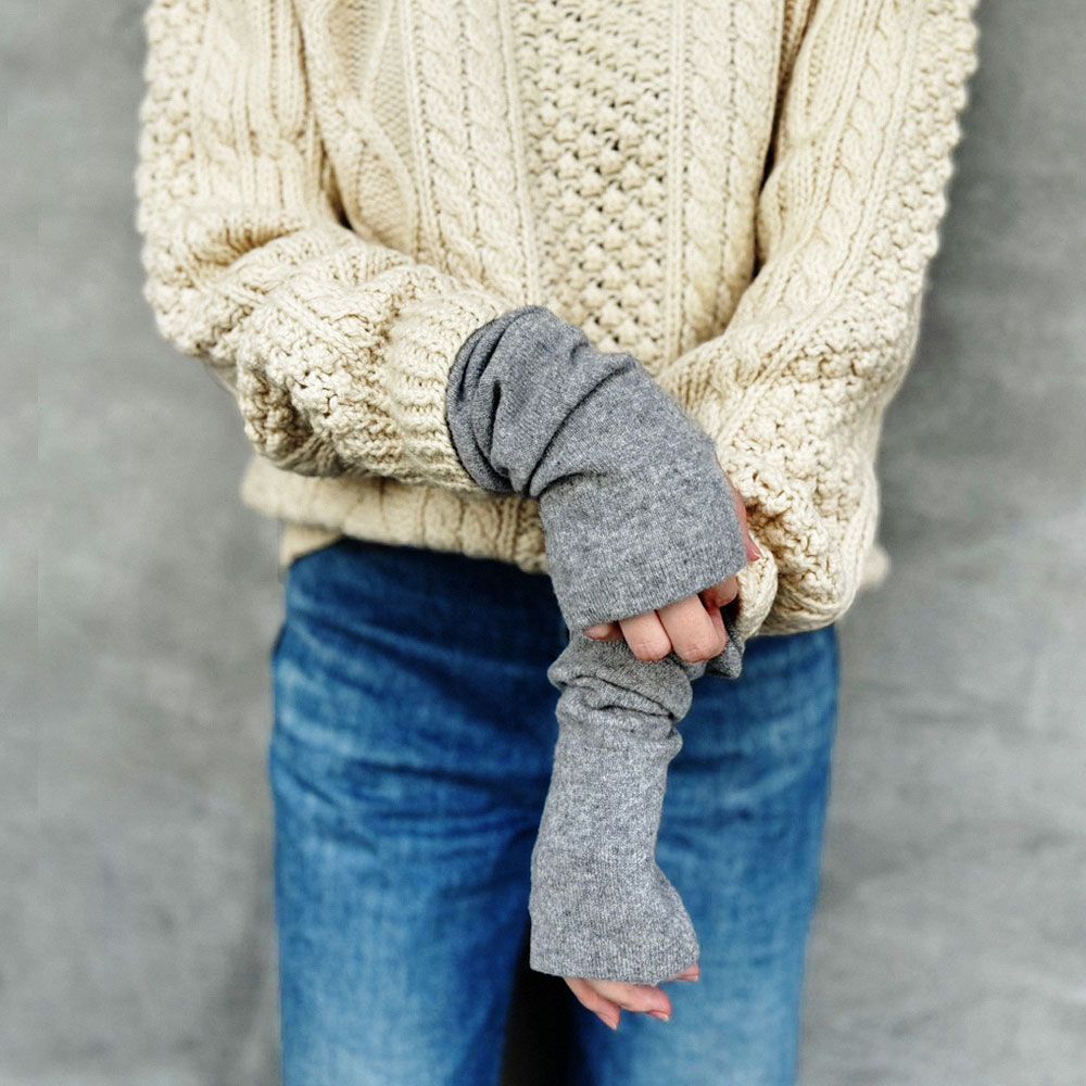 100% cashmere arm warmers that gently wrap around your hand and keep it warm.