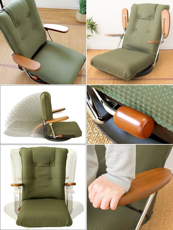 A calm and basic Japanese za-chair [UGUISU] with pump-type armrests that easily flip up.