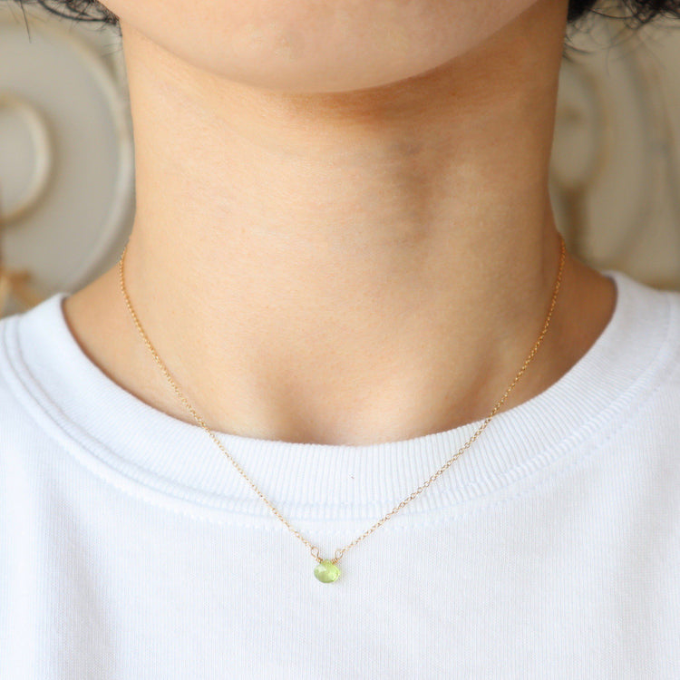 美麗的石灰綠色橄欖石。纖細的 14KGF 鏈條與肌膚完美融合,讓您的頸部看起來更美麗。