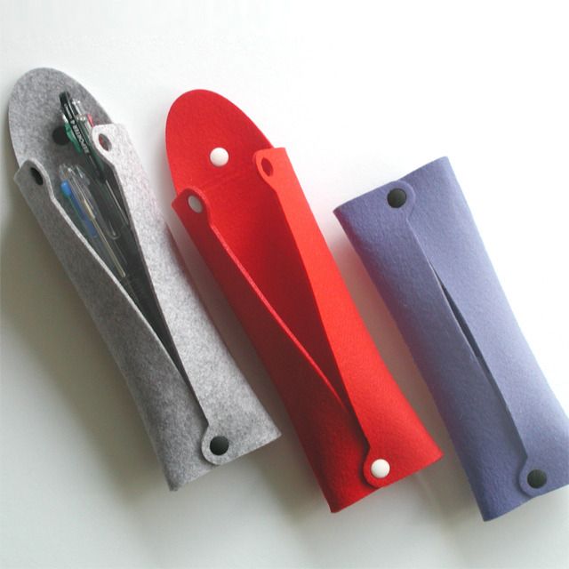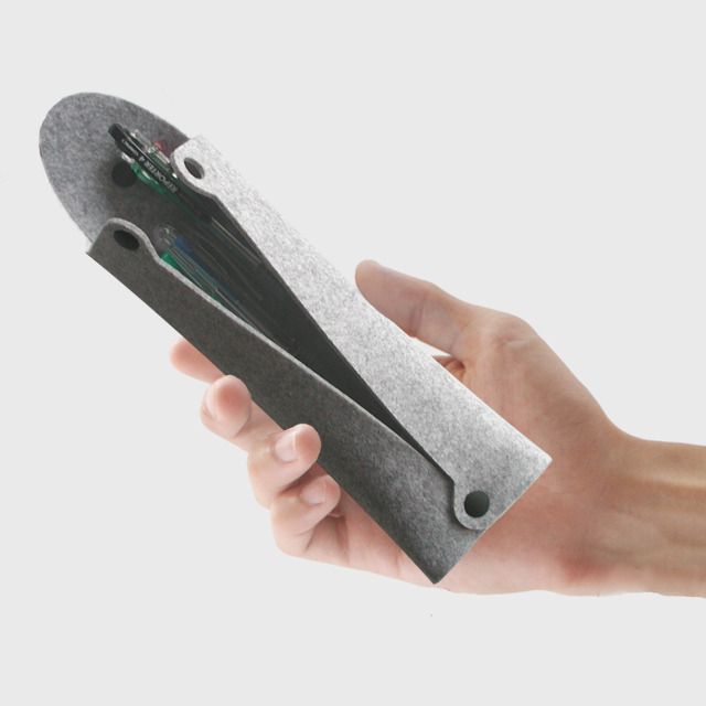 The felt pen case (sand color) features a comfortable volume created by fastening a single piece of felt with a snap button, and a slim shape that fits in the hand.