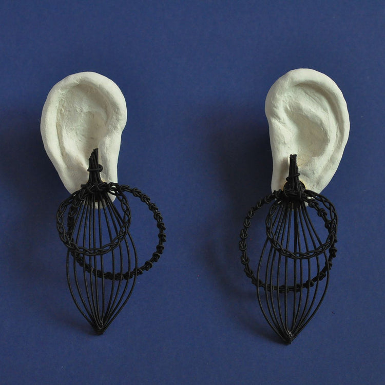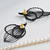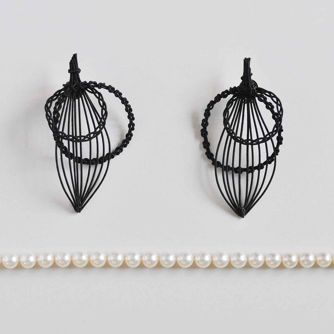 黑色水引在日本通常用於非節日包袋,在節日場合從來不會出現。然而,這次我們敢於只使用黑色,並創造了耳環,使得形狀不是透過「顏色」而是透過「光」和「影」來感受的。