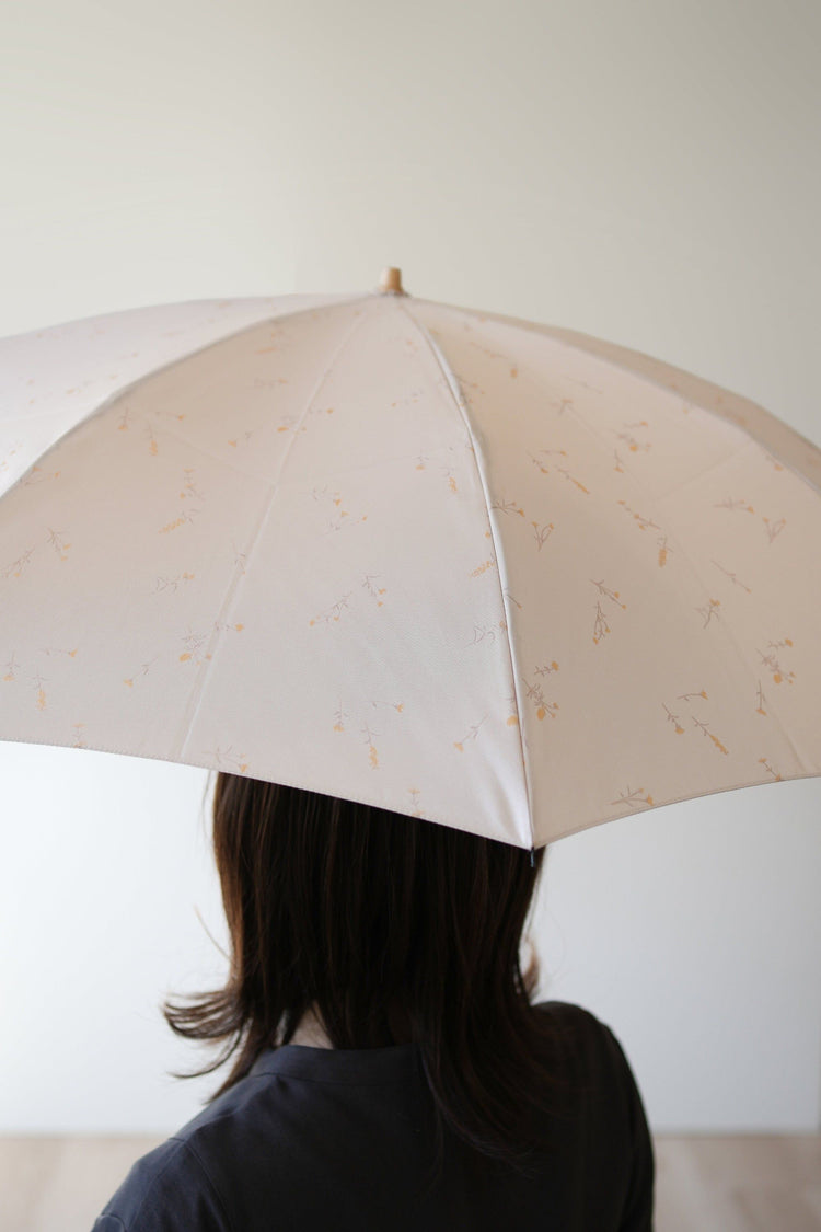 Bloom" is a rain and shine umbrella that expresses a sense of quality with a Jacquard weave structure that has a reduced luster, trapping the flowers and grasses themselves like pressed flowers.