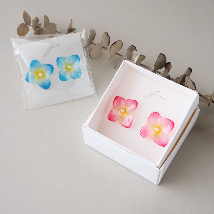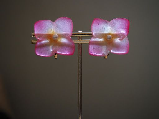 Transparent Japanese paper hydrangea Pierced earrings / Clip-on earrings (pink)