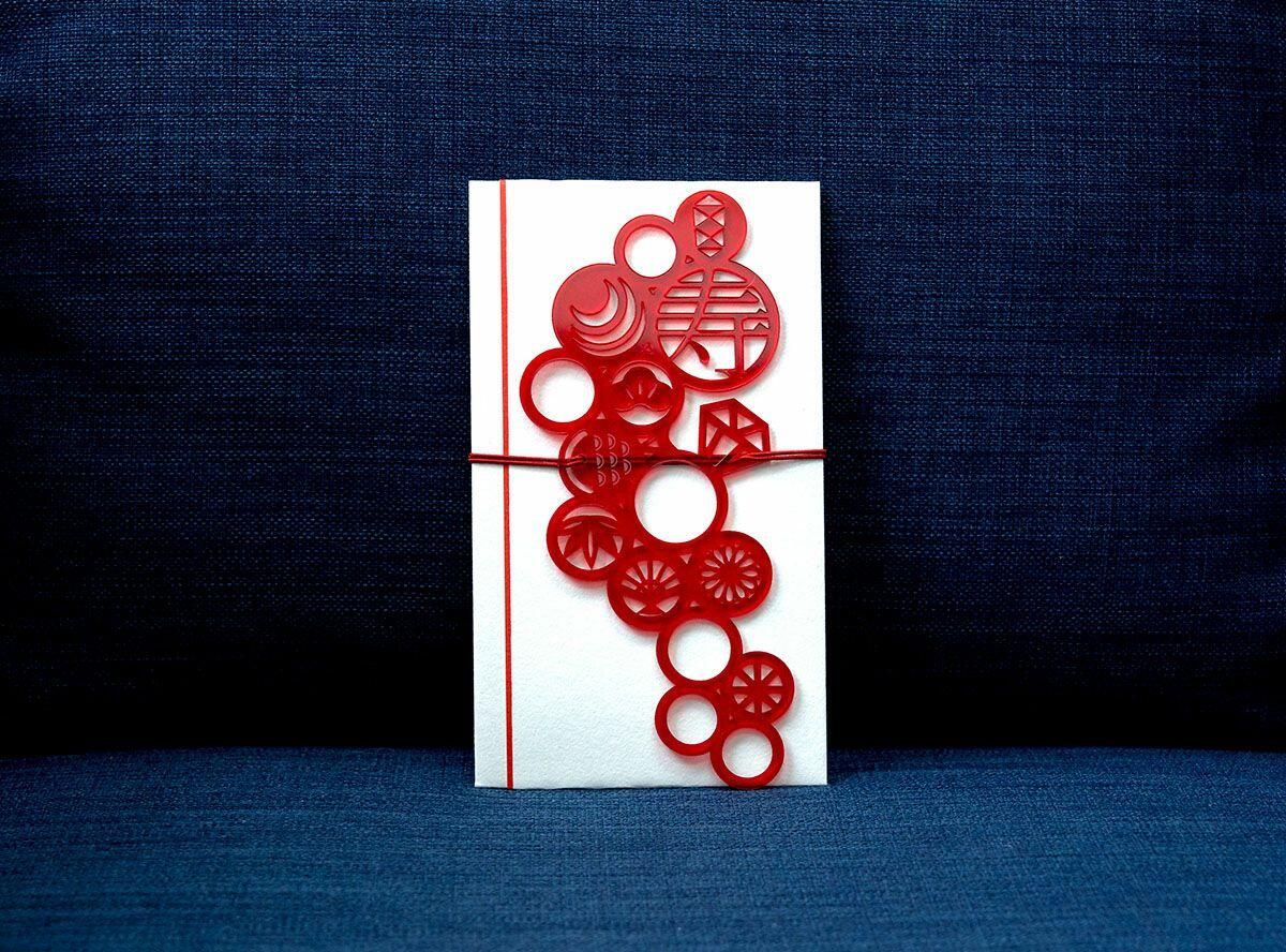 The "Kotobuki" design, which can be used for weddings, is made of acrylic, while the "Iwai" design, which can be used for a wide range of celebratory occasions, is made of thick paper.