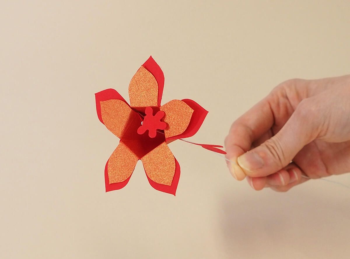 For the ribbon, braided cords and decorative tassels are used to create a Japanese-style arrangement.