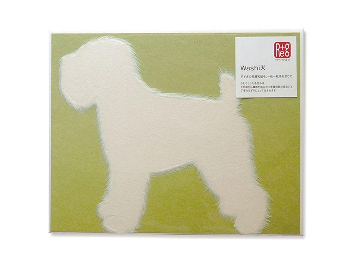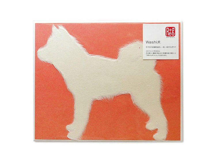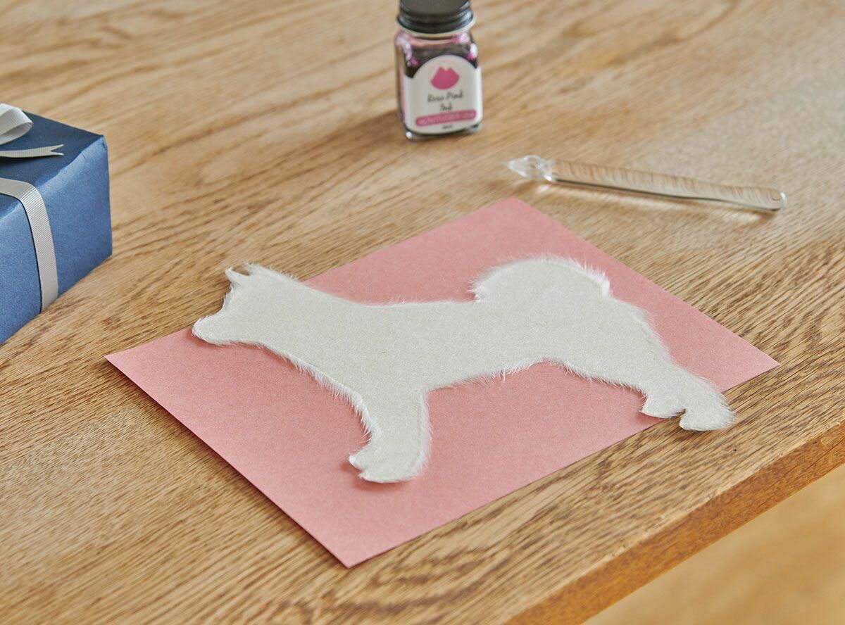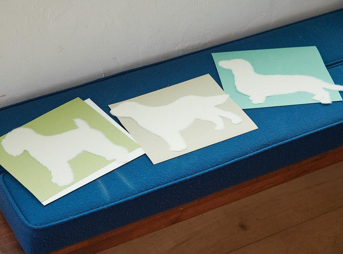 This greeting card expresses the fluffy fur of a dog by taking advantage of the texture of the fibers of Mino Washi.