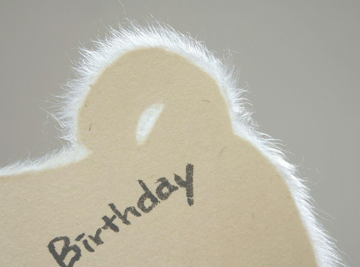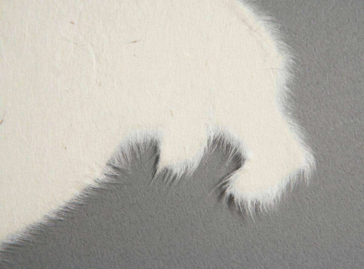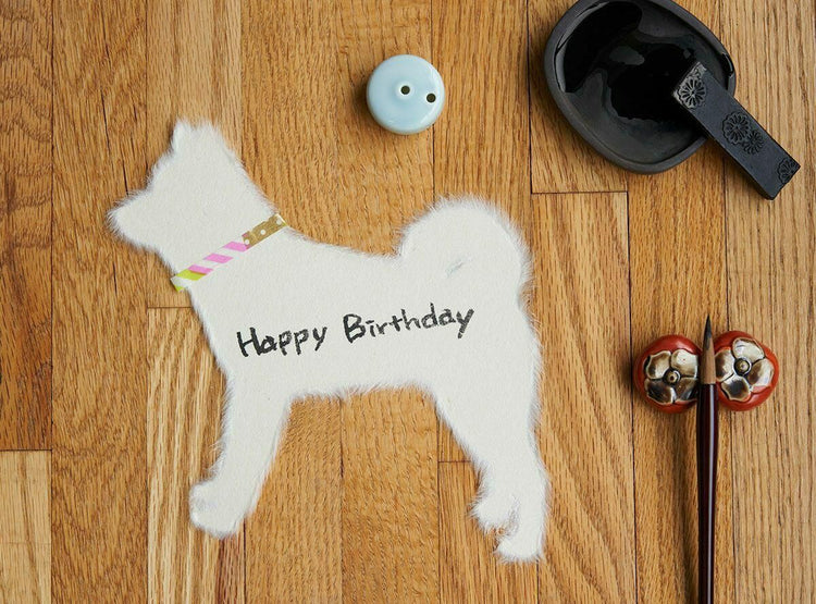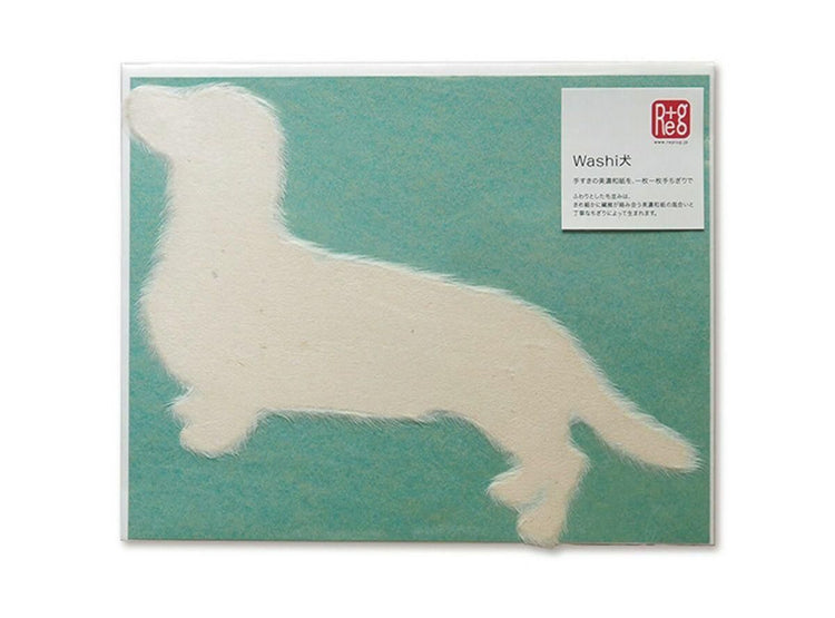 This greeting card expresses the fluffy fur of a dog by taking advantage of the texture of the fibers of Mino Washi.