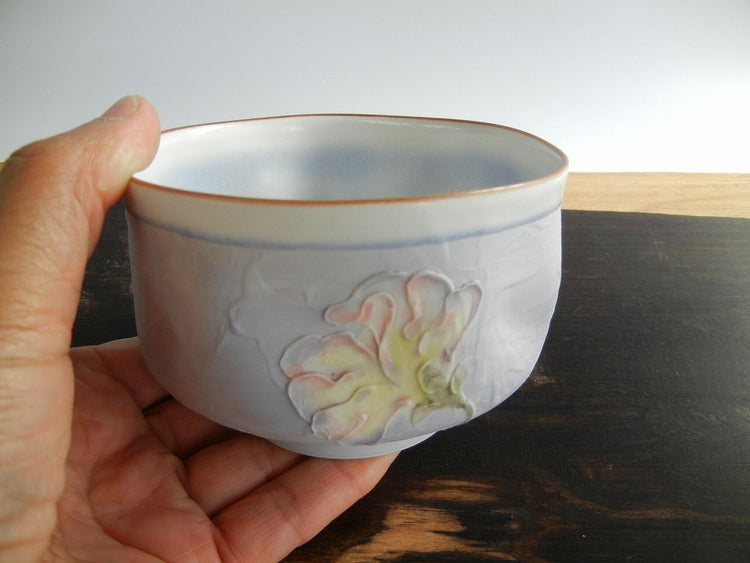 材質是瓷器,透過手工六郎成型進行水磨並立即壓平。