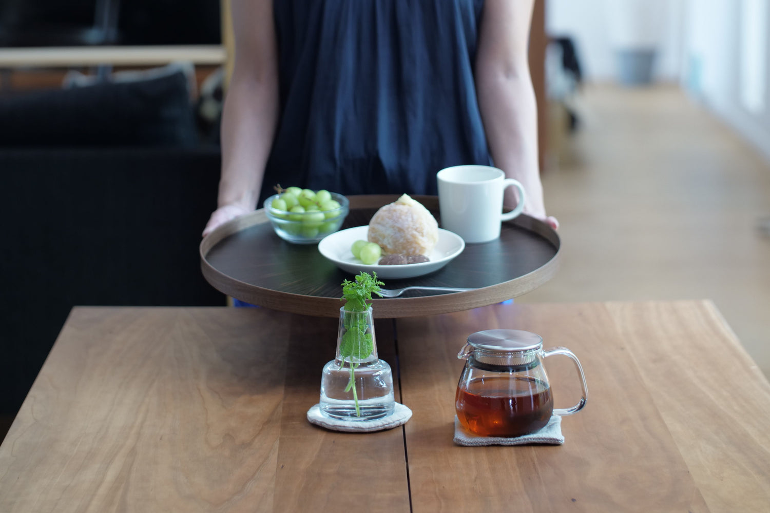 This tray is larger than normal trays, but lightweight. It can be used in various ways, such as on the floor or sofa, as well as for carrying things.