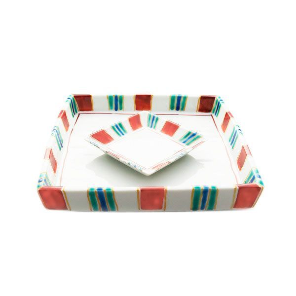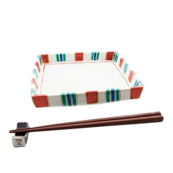 [Eisyou] Rectangular dish with striped foot
