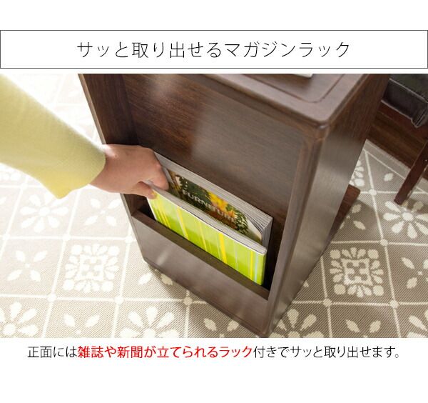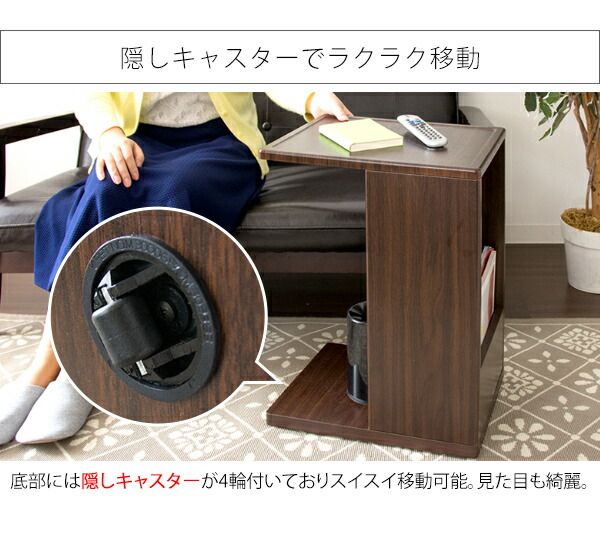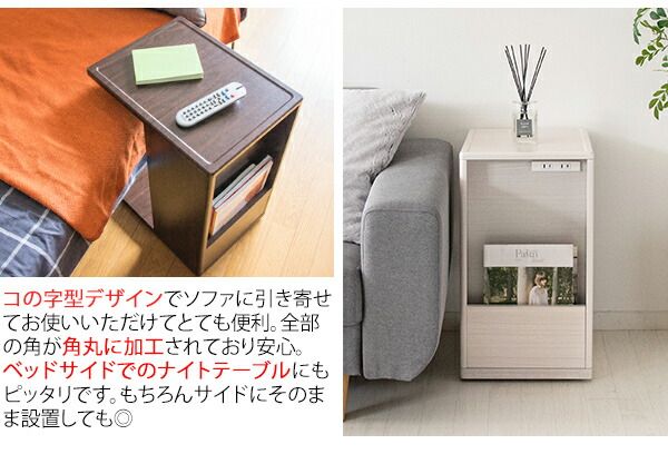 The U-shaped design allows you to use it by pulling it closer to the sofa. The front has a rack for magazines and newspapers, and the back can be used for books, sundries, trash cans, routers, and other items that you don't want to show to the public.