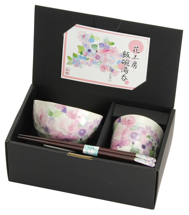 花工房粉紅碗茶杯佐天保筷子 (40665)
