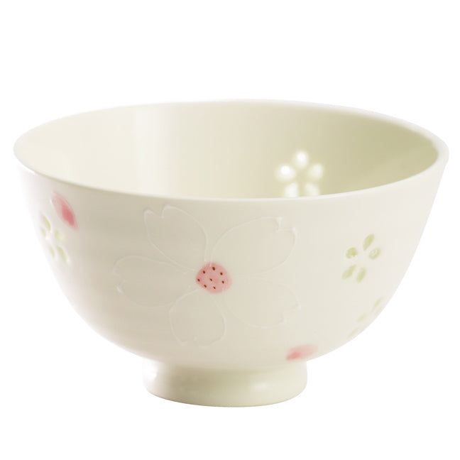 此件鏤空飯碗,鏤空,呈櫻花形狀,釉色透明。