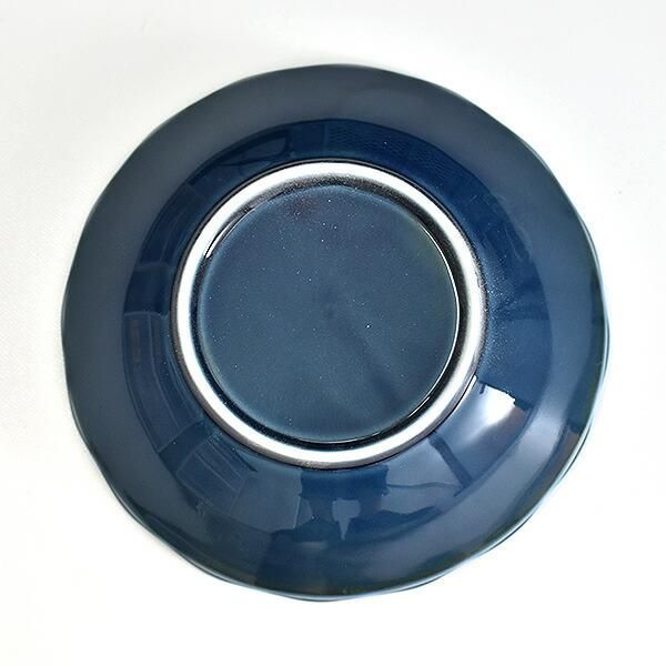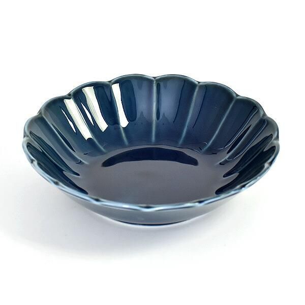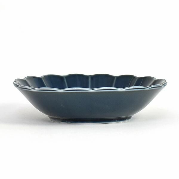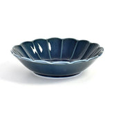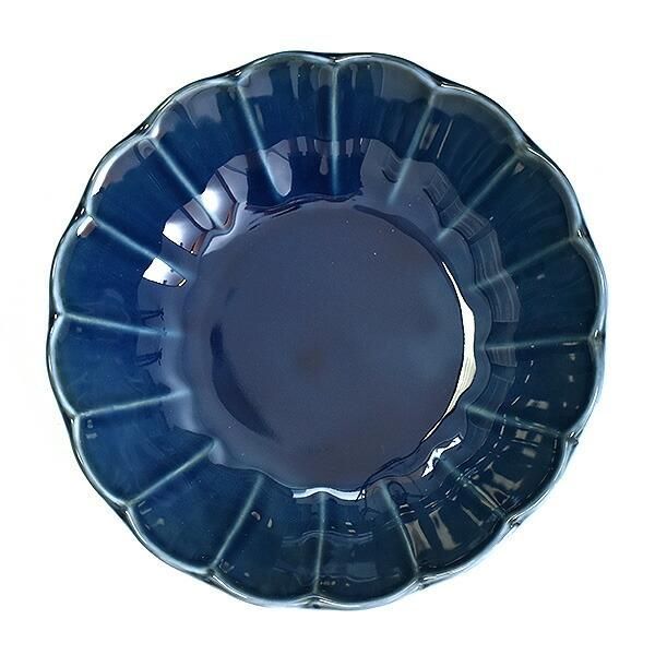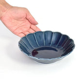 Fiore navy flower-shaped 17cm shallow bowl, blue type, Western tableware, round bowl, made in Japan, Minoyaki, stylish.