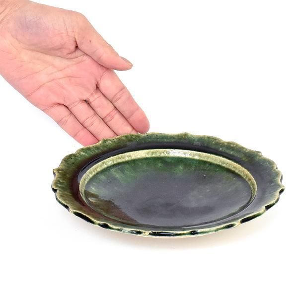 Oribe Rinka 6" Dish, Greenish, Japanese Tableware, Faceted, Made in Japan, Minoyaki, Stylish, Modern