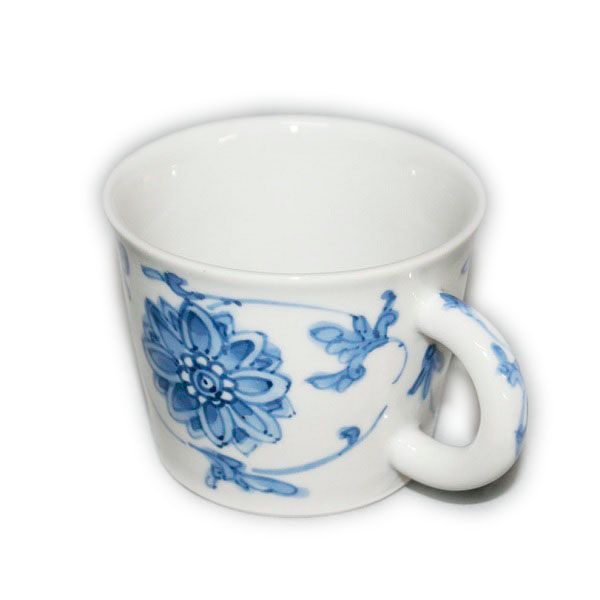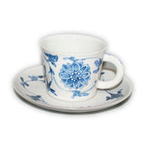 [Eisyou] Cup and saucer, floral wheel design in underglaze blue