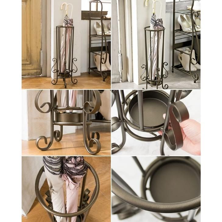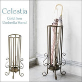 This umbrella stand from the popular "Celestia" series has a sophisticated design with curved decorations and an antique gold color that creates a comfortable atmosphere.