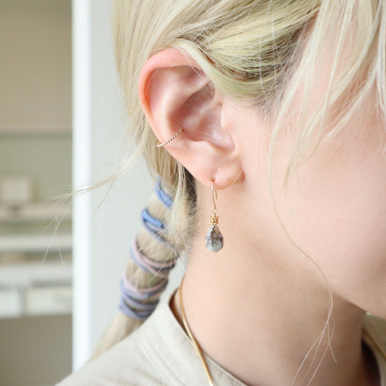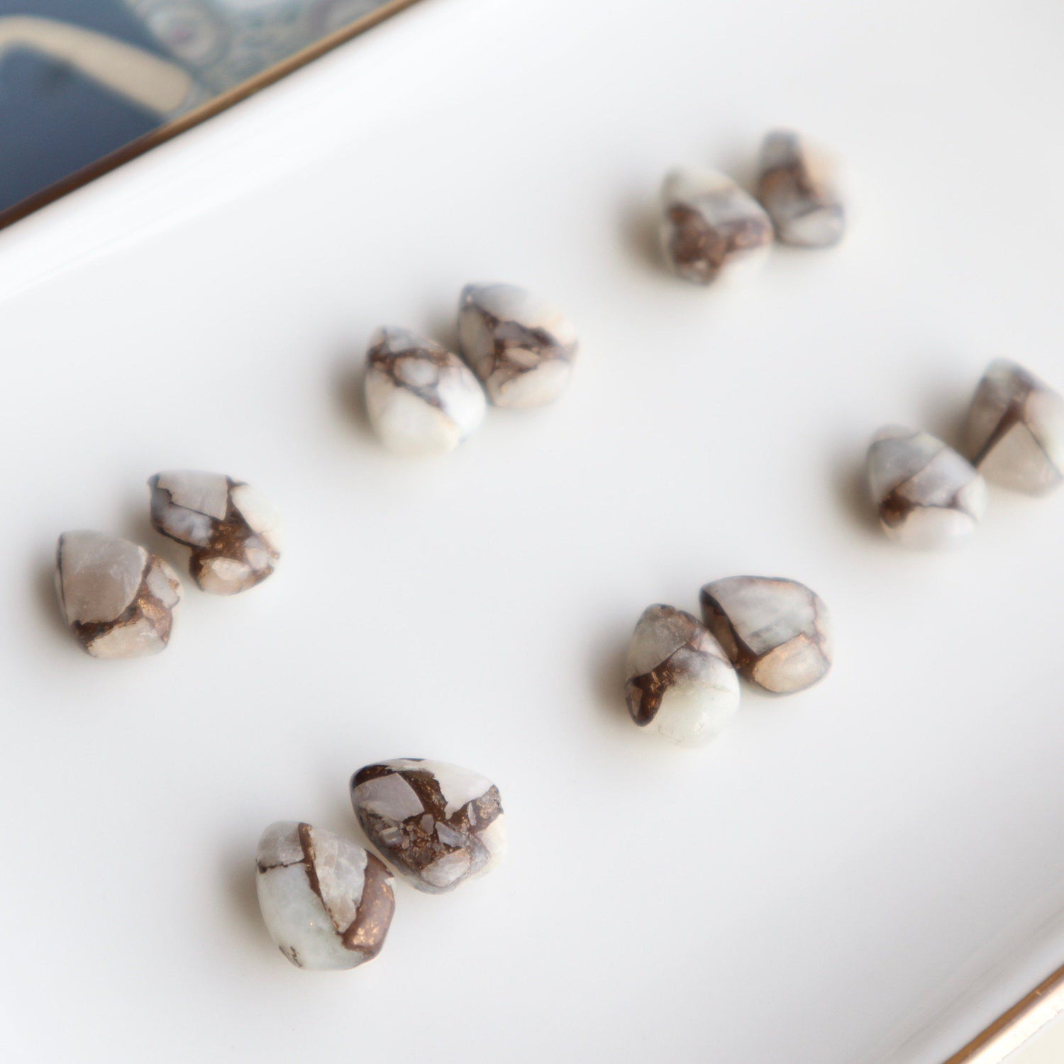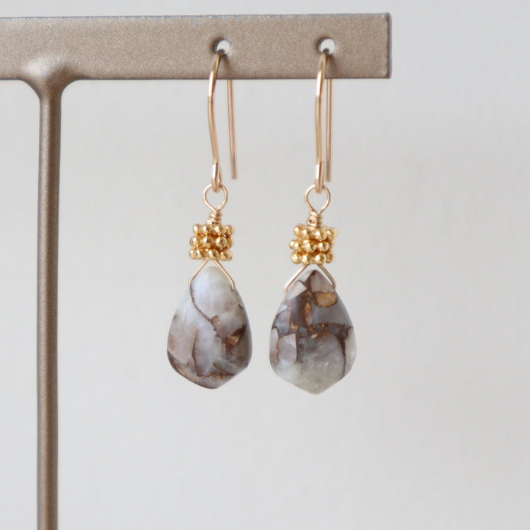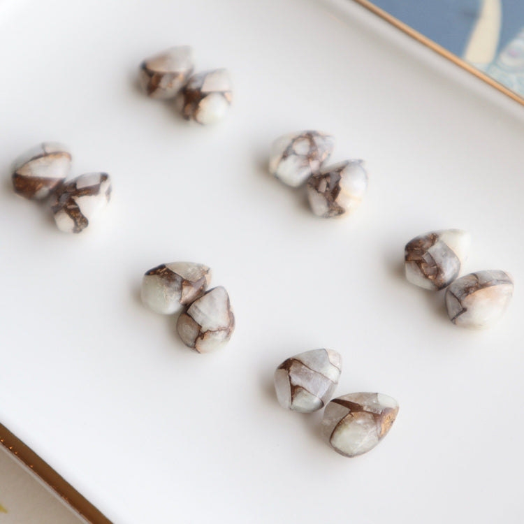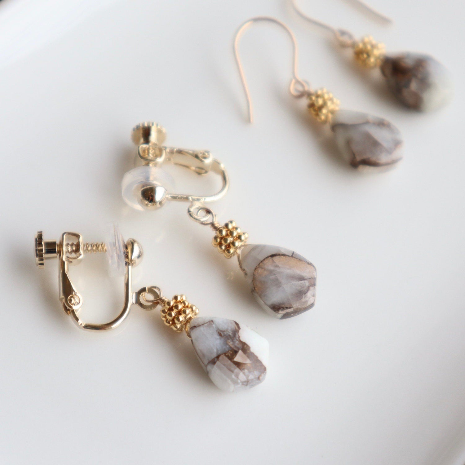 Material: 14KGF (Pierced earrings hardware), GP on alloy (Clip-on earrings hardware, beads), Copper Calcite