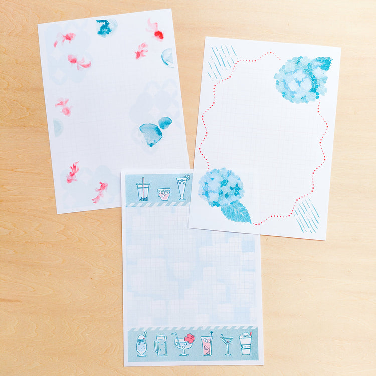 Five types of letterheads with different patterns, each interspersed with summer-inspired motifs, are available.