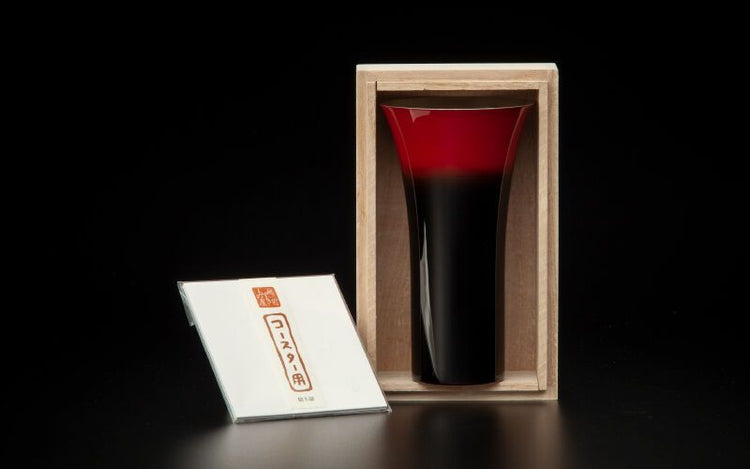 從漆紅到漆黑。杯子採用「模糊漆」技術進行裝飾,這種技術只能透過手工漆才能實現。