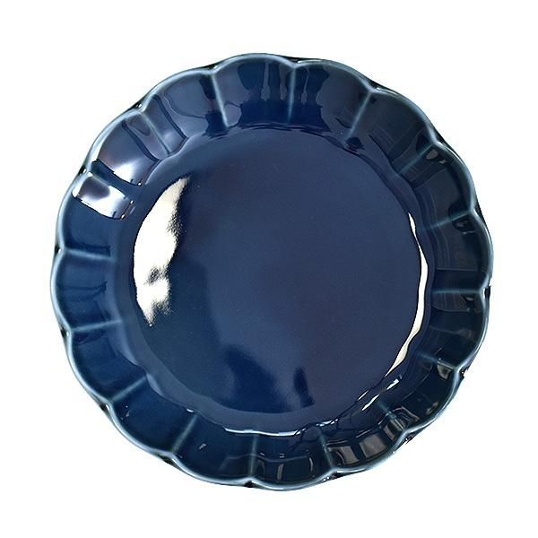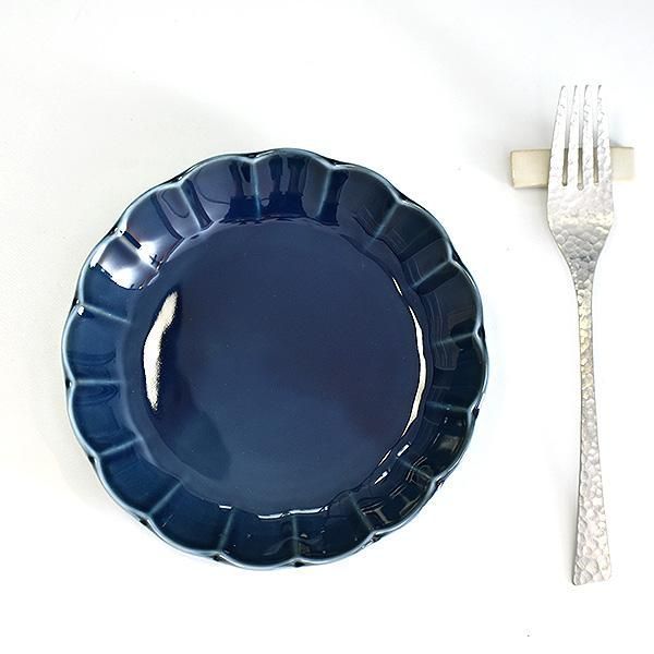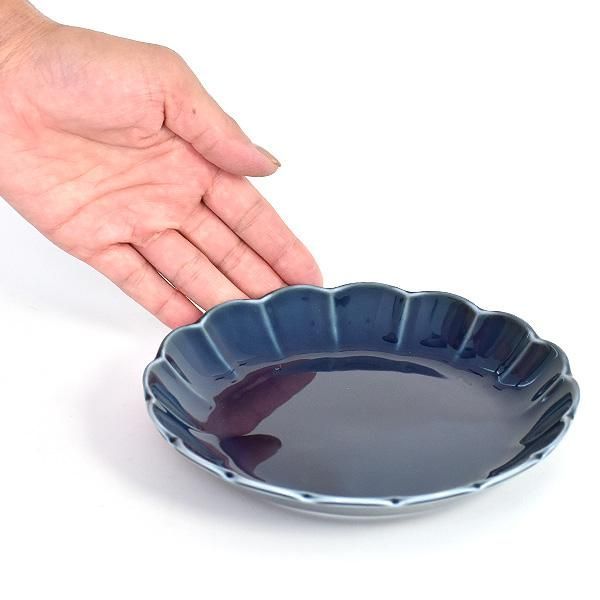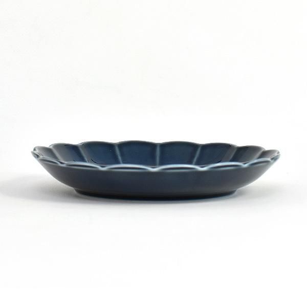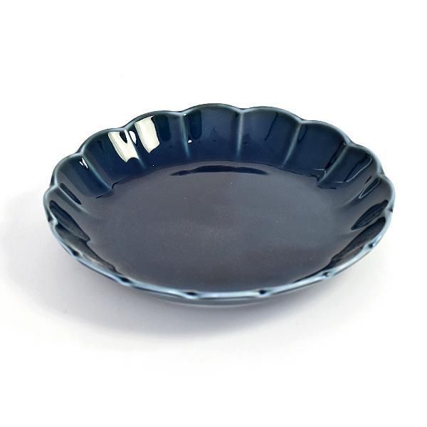 Fiore navy flower-shaped 16.5cm dish, blue, Western tableware, round plate, made in Japan, Minoyaki, stylish.