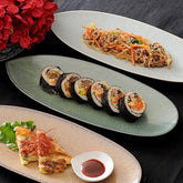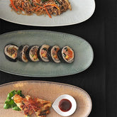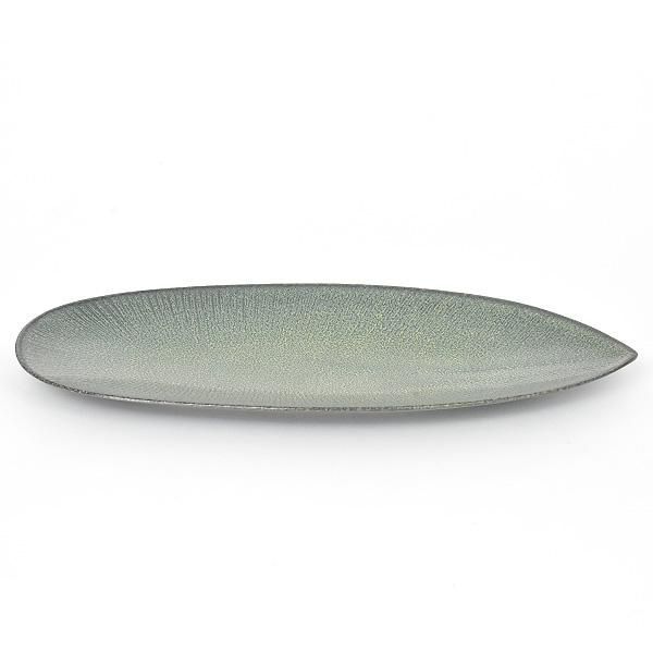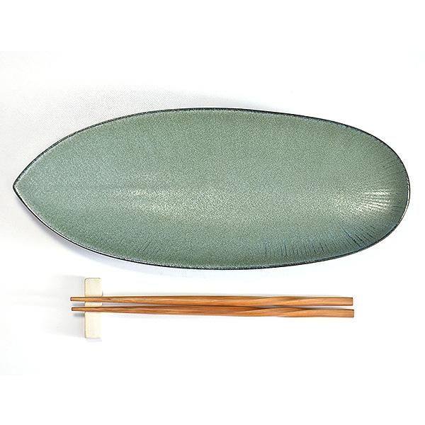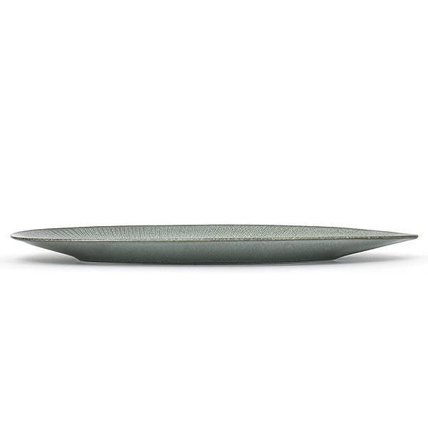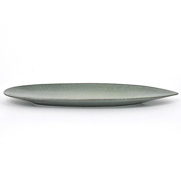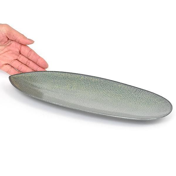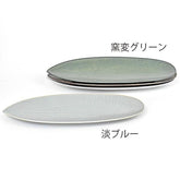 Moa Kiln Changed Green 32cm Long Plate, Large, Green Type, Western Tableware, Platter, Deformed Plate, Made in Japan, Minoyaki, Cafe Style, Stylish, Modern