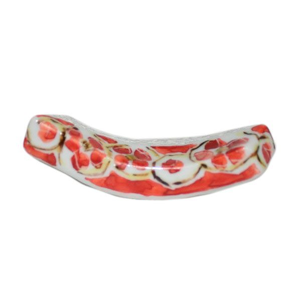This is a nice and modern Kutani Yaki chopstick rest with a silver-plated plum design.