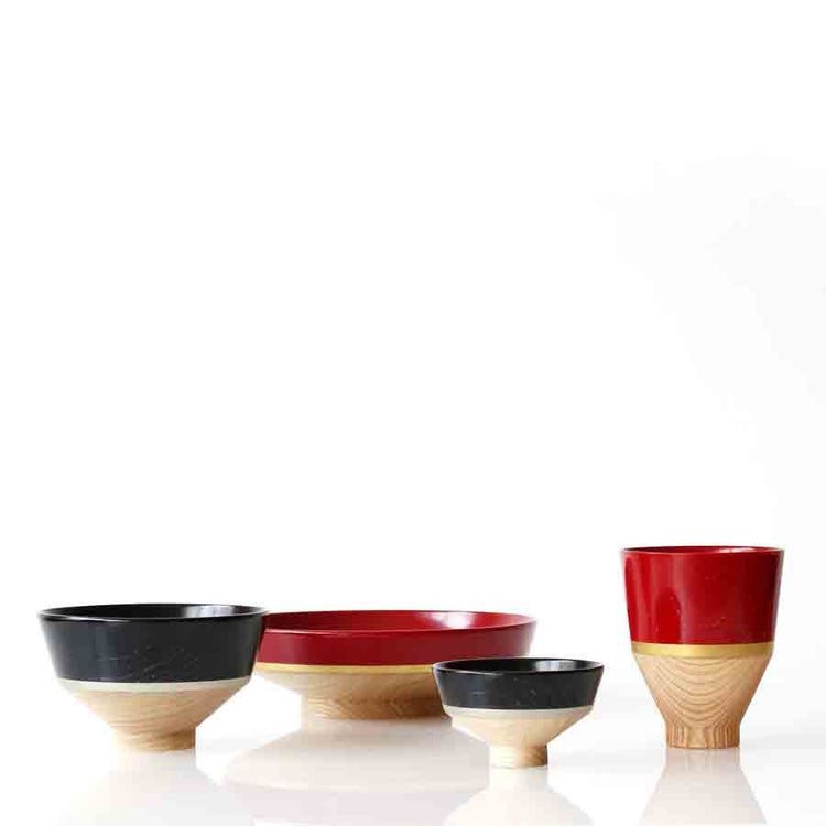 在此碗上同時欣賞漆層、木紋和金銀漆的效果。